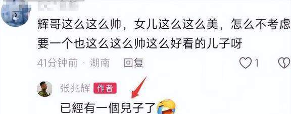 还有网友逗他:“辉哥你这么帅,女儿又这么漂亮,怎么不再要个帅气的儿子呢?”张兆辉看得也是又想笑又无奈,还亲自回复说:“我已经有个儿子啦。”